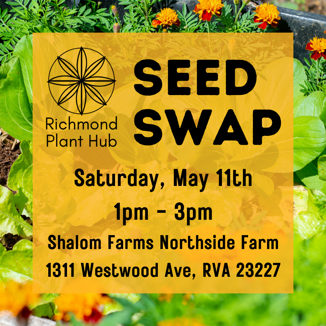 Free seeds, seedlings, and starts! Join us for a Seed Swap on Saturday, May 11th from 1pm-3pm at Shalom Farms Northside Farm. Feel free to bring seeds and seedlings to trade if you would like. Eryn of Richmond Plant Hub will be bringing tons of free seeds to give away. If you have the time,… Continue reading Seed Swap 2024